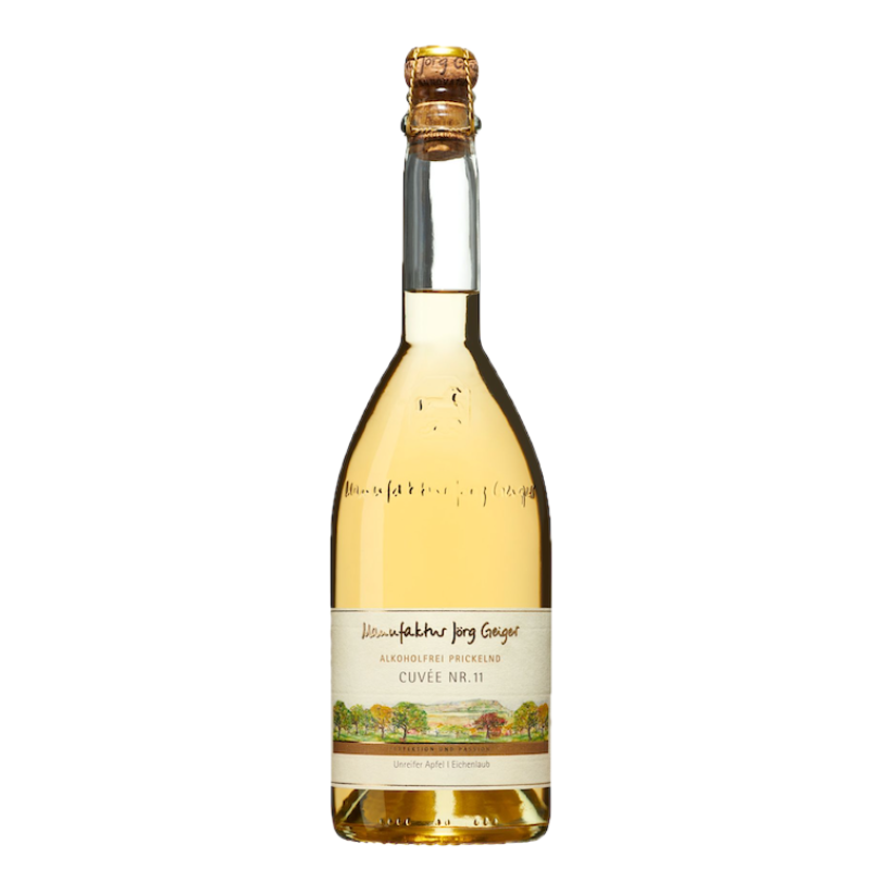 Der alkoholfreie Prisecco „Cuvée Nr.11“ von Jörg Geiger ist ein Meisterwerk der Handwerkskunst, das aus einer sorgfältigen Auswahl von unreifen Boskoop-Äpfeln und Nageles-Birnen hergestellt wird. Angereichert mit den delikaten Noten von Jasmin- und Hibiskusblüten sowie einer speziellen Zugabe von Eichenblättern beim Pressen, bietet dieser Prisecco eine erfrischende Säure und eine anspruchsvolle Aromenvielfalt.